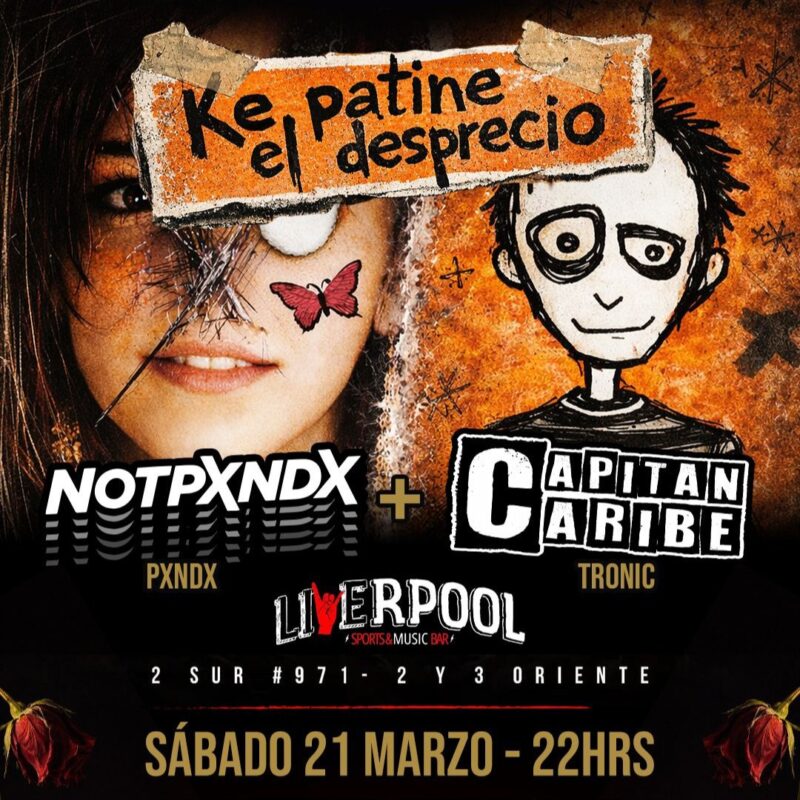 Una buena dosis de rock del nuevo milenio nos traen con los mejores tributos a los mexicanos Pxndx con Notpxndx y por otro lado – Capitan Caribe – con lo mejor de los nacionales Gufi & Tronic en un concierto de puros éxitos que recordaremos toda la época emo de nuestras vidas !!… Imperdible!!